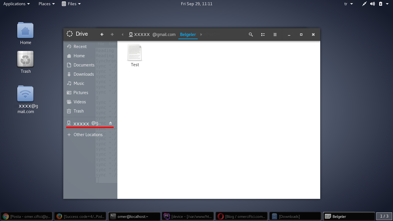 Hepsi bu kadar. Artık Fedora Linux’ta bu klasör içine atacağımız belgeleri Google Drive hesabımızla otomatik olarak senkron edebiliyor durumdayız.